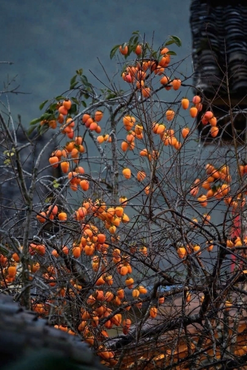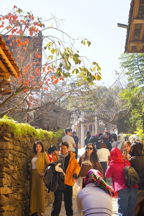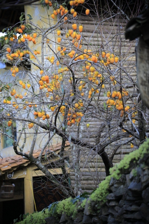 Giữa trung tâm làng Lô Lô Chải (xã Lũng Cú, tỉnh Tuyên Quang, Hà Giang cũ), trước một homestay nằm trên con dốc chính, một cây hồng vươn tán ra ngoài tường rào trở thành điểm check-in hút khách.