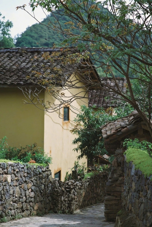 Trong làng cũng có cây sen đất lá tròn, hoa vàng hoặc cam bò kín các bờ đá, một trong những điểm đặc trưng của kiến trúc bản địa.