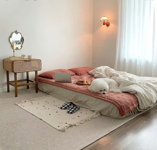 Lấy cảm hứng từ phong cách Nhật Bản, xu hướng đặt nệm trực tiếp lên sàn mang đến cảm giác thoáng đãng, mộc mạc và gần gũi. Không khung giường, không chân giường, giải pháp này đặc biệt phù hợp với các căn hộ nhỏ nhờ khả năng tiết kiệm không gian tối đa.