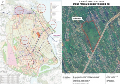 Vị trí khu đất nghiên cứu lập quy hoạch Trung tâm hành chính tỉnh Nghệ An |