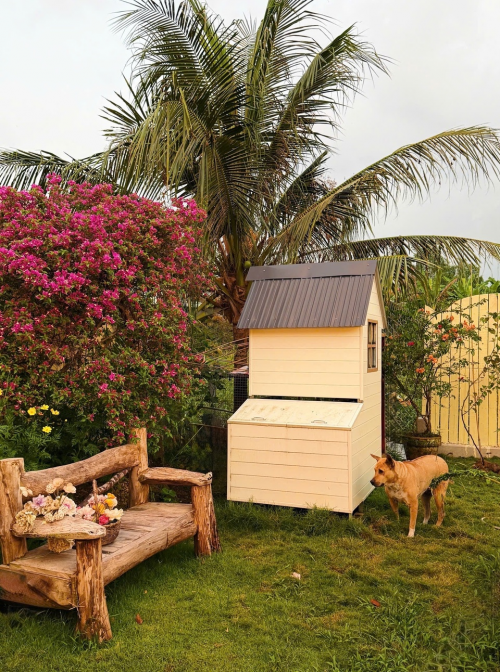 Trên mảnh đất 1.000 m2, thay vì xây một căn nhà bề thế theo kiểu truyền thống, chị Thảo Ngọc chia lộ trình xây dựng thành nhiều đợt. Mỗi căn nhà nhỏ có diện tích vừa phải, chi phí hoàn thiện khoảng 200-300 triệu đồng và chỉ mất vỏn vẹn một tháng để thành hình.