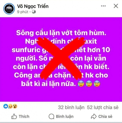 Trong sáng cùng ngày, một số trang mạng loan truyền thông tin "Sông Cầu lặn vớt tôm hùm, nghi bị dính chất axit sunfuric gì đó, đã chết hơn 10 người. Số người còn lại vẫn còn lặn chưa lên nên không biết. Công an đã chặn hết không cho bất kỳ ai lặn nữa".