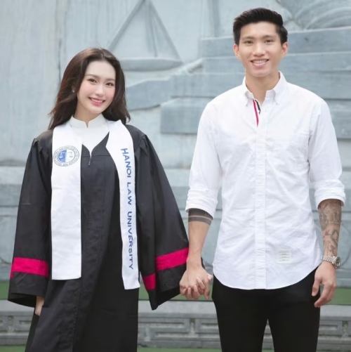 Trong mục "hỏi - đáp" với người theo dõi qua Story trang Instagram mới đây, Doãn Hải My (sinh năm 2001), bà xã Đoàn Văn Hậu, khiến nhiều người ngưỡng mộ khi tiết lộ đã trúng tuyển vào chương trình đào tạo thạc sĩ tại Đại học Luật Hà Nội (HLU). Hải My cũng là nàng WAG có học vấn cao trong dàn vợ/bạn gái cầu thủ tuyển Việt Nam. Trước khi kết hôn, cô tốt nghiệp bằng giỏi Đại học Luật Hà Nội năm 2023. Ảnh: @doanvanhau_1904/Instagram. |