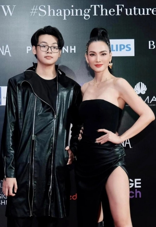 Anh Thư và con trai. |