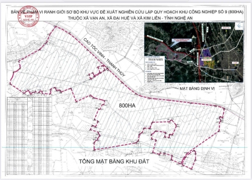 Ranh giới sơ bộ khu vực đề xuất nghiên cứu lập quy hoạch khu công nghiệp số 9 của Công ty TNHH VSIP Nghệ An |