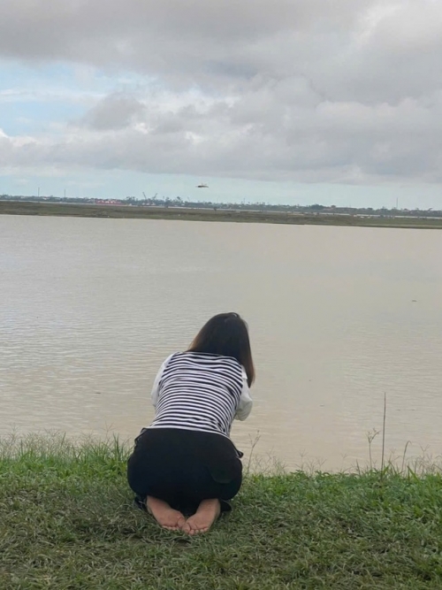 Chị Y. đau đớn gọi tên con bên bờ sông Lam. (Ảnh: VietNamNet)
