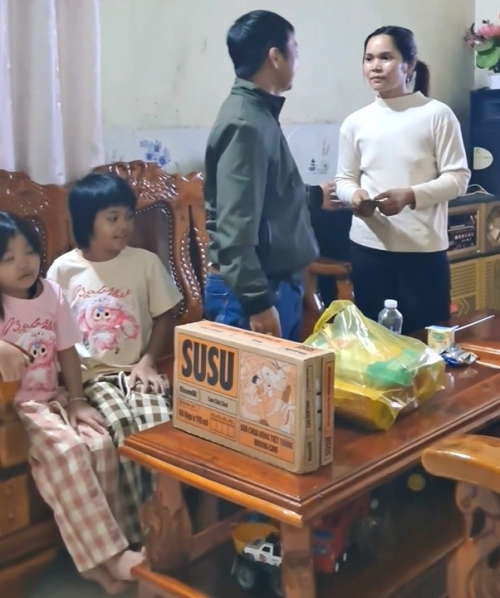 Hai cháu nhỏ đã được đưa về nhà ông bà ngoại và được một số mạnh thường quân đến thăm hỏi. |