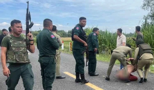 Lực lượng Campuchia khống chế phạm nhân đầu tiên ngay sáng ngày 18-11, chỉ hai tiếng sau khi xảy ra cuộc vượt ngục - Ảnh: KHMER TIMES |