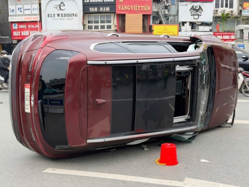 Tại hiện trường, xe ô tô nhãn hiệu Santafe màu đỏ - BKS: 30H-158.33 do Doãn Việt Cường điều khiển từ Đường Láng đi Trường Chinh, khi đến đoạn đường đối diện số 34 Đường Láng thì xảy ra va chạm với 2 xe ô tô khác cùng chiều rồi lật nghiêng giữa đường.