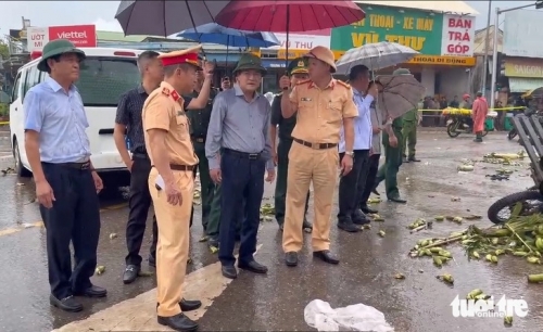 Ông Phan Phong Phú (giữa) - Phó chủ tịch UBND tỉnh Quảng Trị - kiểm tra hiện trường vụ tai nạn - Ảnh: HOÀNG TÁO |