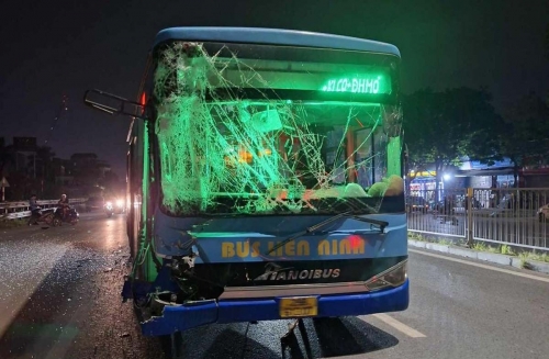 Vào khoảng 23h ngày 22/9, một xe tải mang BKS 29F-049.XX đang dừng đèn đỏ chờ tàu hỏa đi qua ở đường Ngọc Hồi (Hà Nội) bất ngờ bị xe buýt mang BKS 29B-613.XX.