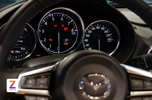 Một số chi tiết quen thuộc của dòng xe Mazda vẫn xuất hiện như mà hình trung tâm cỡ nhỏ, vô lăng 3 chấu bọc da và đồng hồ kỹ thuật số cỡ lớn phía sau. |