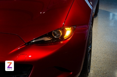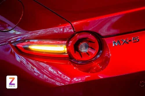 Chiếc MX-5 Miata trên ảnh vẫn dùng ngôn ngữ thiết kế Kodo quen thuộc của nhà Mazda. Phiên bản được trưng bày tại Việt Nam có màu sơn ngoại thất đỏ Artisan Red Metalic. |