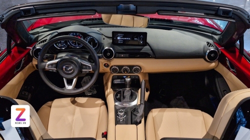 Không gian nội thất của MX-5 Miata sở hữu tone màu nâu be Sport Tan cùng gói da Nappa Terracotta cao cấp. |
