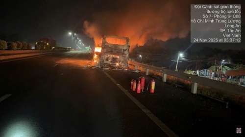 Tiếp nhận thông tin, lực lượng CSGT, Cảnh sát PCCC Công an tỉnh Tây Ninh khẩn trương điều 2 xe chữa cháy chuyên dụng cùng hàng chục cán bộ, chiến sĩ có mặt hiện trường để dập lửa, điều tiết giao thông. Khoảng 30 phút sau, ngọn lửa đã được dập tắt hoàn toàn.