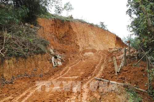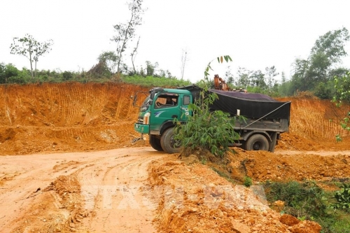 Khu vực xảy ra tình trạng khai thác đất đồi trái phép tại bản Lè, xã Qùy Châu (tỉnh Nghệ An). Ảnh: Xuân Tiến - TTXVN |