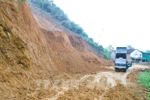 Do không tuân thủ các giải pháp kỹ thuật, an toàn lao động nên nguy cơ xảy ra sạt lở, sụt trượt vách đất, đe dọa trực tiếp đến người và phương tiện tại những điểm khai thác đất trái phép. Ảnh: Xuân Tiến - TTXVN |