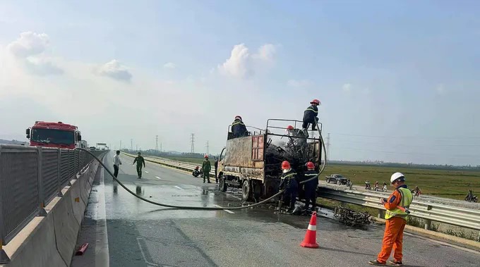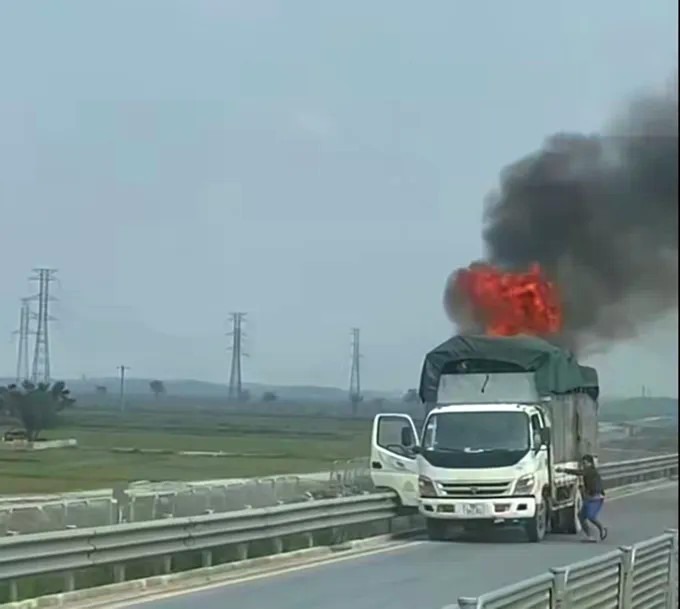 Phát hiện sự việc, tài xế đã điều khiển xe tải vào sát lề đường, dừng phương tiện, đồng thời tìm cách dập lửa nhưng bất thành. Ngọn lửa nhanh chóng lan rộng, bao trùm cả xe tải.