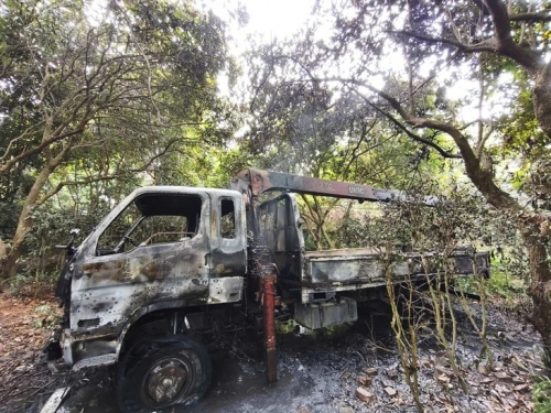 Nhận tin báo, Công an xã Hòa Lạc đã đến hiện trường, xác định xảy ra vụ cháy xe tải gắn cẩu.