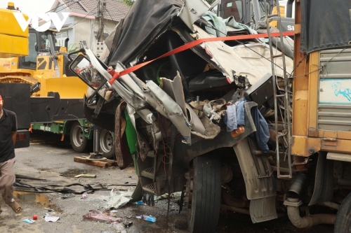 Đầu xe tải hư hỏng nặng. |