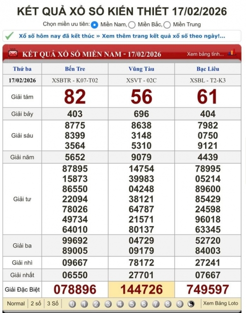 Kết quả xổ số miền Nam ngày 17-2. Ảnh: ĐLVS Hải Diệu |