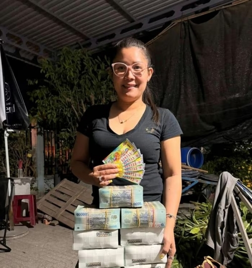 Người phụ đang gây "sốt" này là chị Hà Tô Phương Lan, chủ đại lý vé số Lan Hùng Tú ở phường Thanh Điền, tỉnh Tây Ninh.