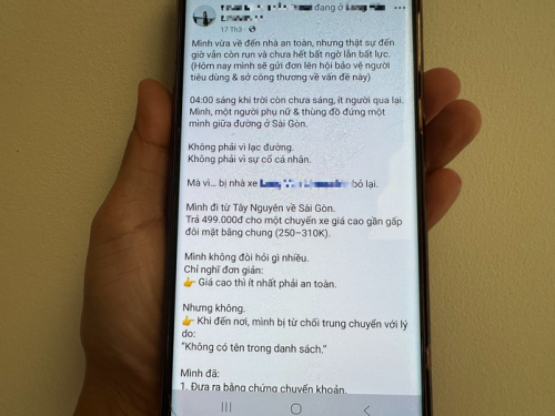 Cũng theo bà H., thời điểm này, tài xế yêu cầu khách xuống xe, qua bên kia đường để đi xe trung chuyển. Tuy nhiên, tài xế đã không chở bà về phường Gò Vấp với lý do "không có trong danh sách".