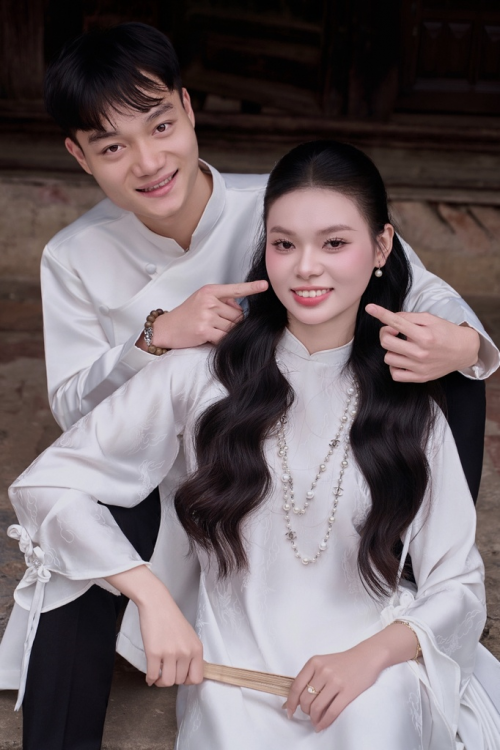 Ngọc Diệp và Xuân Bắc ở quê Phú Thọ (cũ) của nam cầu thủ U23 Việt Nam. Ảnh: ngocdiephoangg/TikTok. |