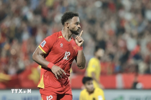 Xuân Son ghi liên tiếp 2 bàn cho đội tuyển Việt Nam. (Ảnh: Minh Quyết/TTXVN) |