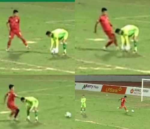 Theo đó, ở bàn thắng kể trên, thủ môn Tiến Tạo liên tục giả vờ thực hiện động tác cúi xuống để ôm bóng nhằm tạo chiêu trò tâm lý với Gia Việt nơi vòng cấm địa. Tuy nhiên, trong một lần thực hiện động tác giả, găng tay của Tiến Tạo đã khẽ chạm nhẹ vào bóng. Chỉ chờ có thế, Gia Việt lập tức tắc bóng, băng lên rồi dứt điểm vào gôn trống trong sự thẫn thờ và ngỡ ngàng của Tiến Tạo.