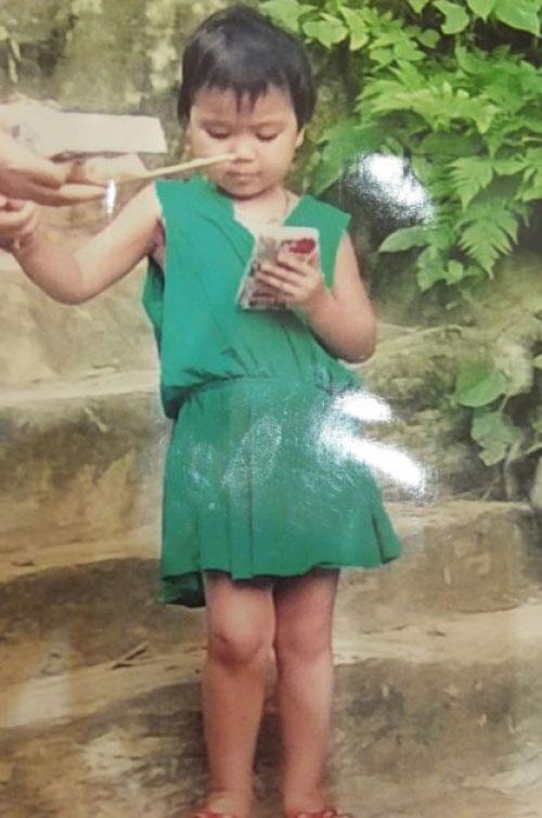 Tại thời điểm mất tích, cháu Nguyễn Minh Châu (4 tuổi), mặc một chiếc váy màu xanh lục, tóc ngắn.