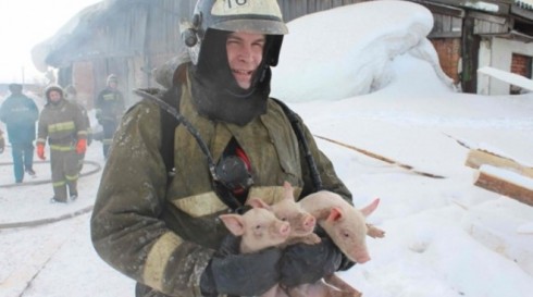 EMERCOM cũng đăng tải những bức ảnh chụp lại quá trình giải cứu bầy lợn.